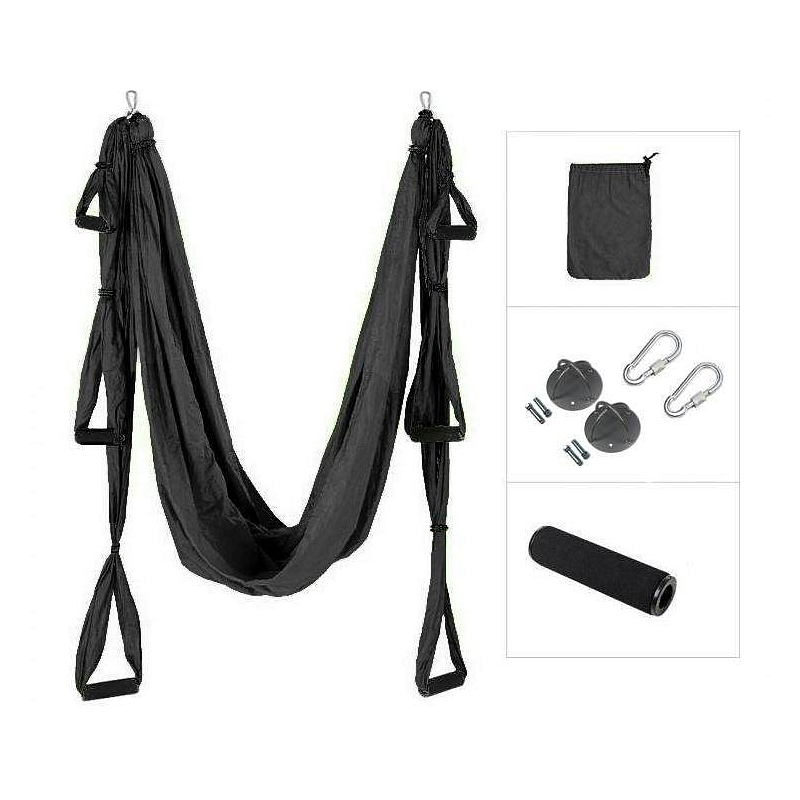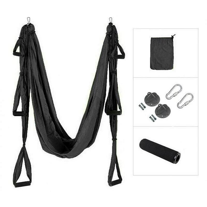 Samotný závěs na aerojógu je jak už se řeklo velký šátek, jenž má schopnost udržet váhu našeho těla a samozřejmě i napětí, které při cvičení vzniká. Nosnost hamaky pro aerojógu je až 120 kg. Materiálem je nylon. Jde o pevný materiál, jenž je současně velice příjemný na omak.