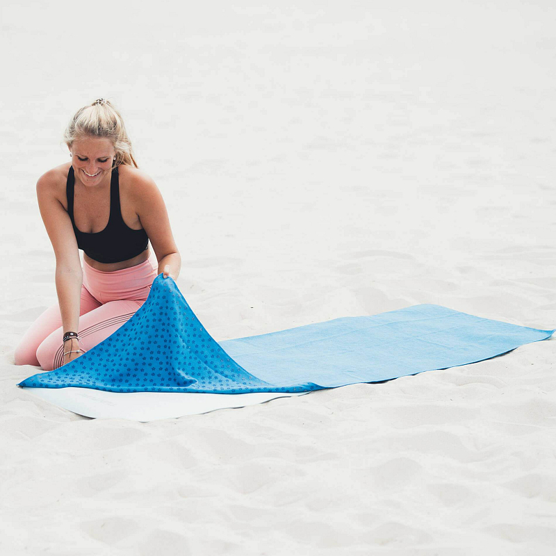 Můžete použít ručník samostatně, ale můžete ho také rozložit na podložku na jógu. Je to pohodlné a také pomáhá udržovat vaši podložku čistou. Tento ručník lze také použít k jiným účelům: složte jej a použijte jako meditační polštář, zvlňte jej, aby se z něj stal blok na jógu, nebo jej jednoduše použijte jako měkkou deku.