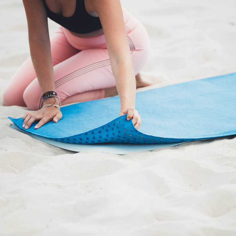 Při cvičení jógy použijte tento praktický protiskluzový ručník Tunturi Silicone Yoga. Proč? Během jógy se můžete hodně potit, zejména s Bikram nebo Ashtanga jógou. Osuška absorbuje pot, což vám pomůže zabránit uklouznutí.
