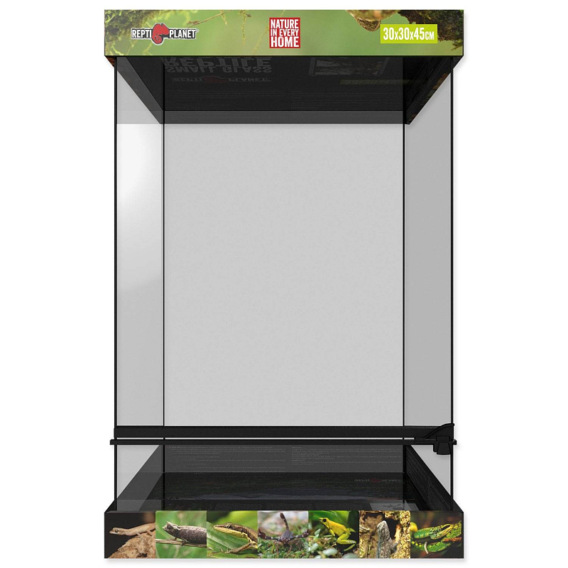 Skleněné terárium s pozadím pro plazy a obojživelníky. Velikost: 30 x 30 x 45...