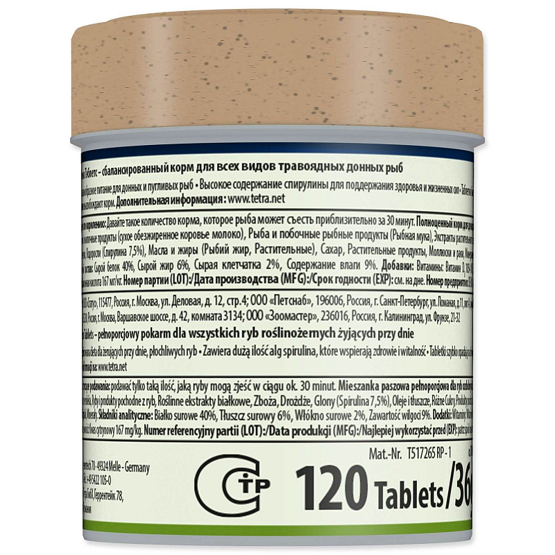 Nutričně vyvážené tablety se Spirulinou pro býložravé ryby, živící se...
