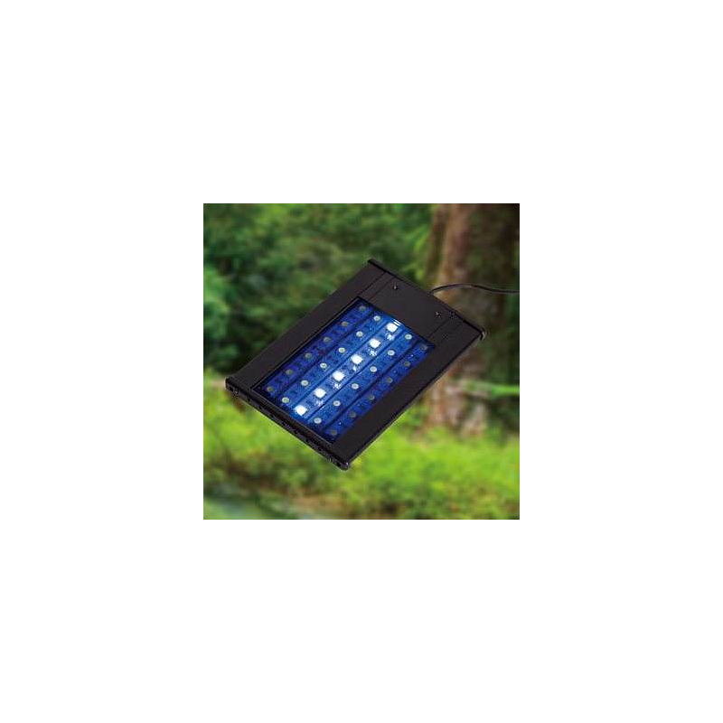 Úsporné hliníkové svítidlo pro zvířata a rostliny. Skládá se z 24 ks 6500k bílých přírodních LED světel a 6 ks 465nm modrých LED světel. Tato lampa je vhodná pro Repti Planet terária, akrylové chovné nádrže a další terária a akvária.