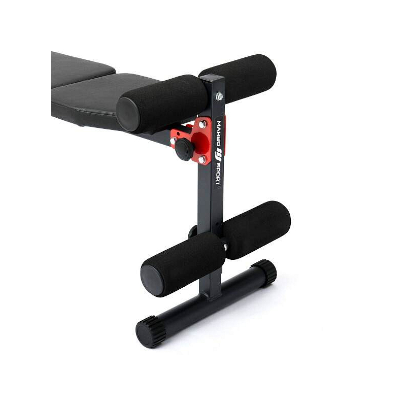 Lavici jde nastavit do několika poloh a záleží pouze na Vás, zda budete trénovat svaly břicha, zad, ramen, atd.. Zarážka nohou je nastavitelná do dvou poloh a zároveň slouží k nastavení úhlu lavice. Konstrukce lavice MARBO MH-L104 2.0 je vyrobena z ocelového profilu 40 x 40 mm, díky kterému má nosnost až 200 kilogramů. Jednotlivé díly jsou vyrobeny na precizních, programovatelných CNC strojích, tento výrobní proces je zárukou bezproblémové montáže a zároveň garantuje plnou stabilitu kompletní lavice.