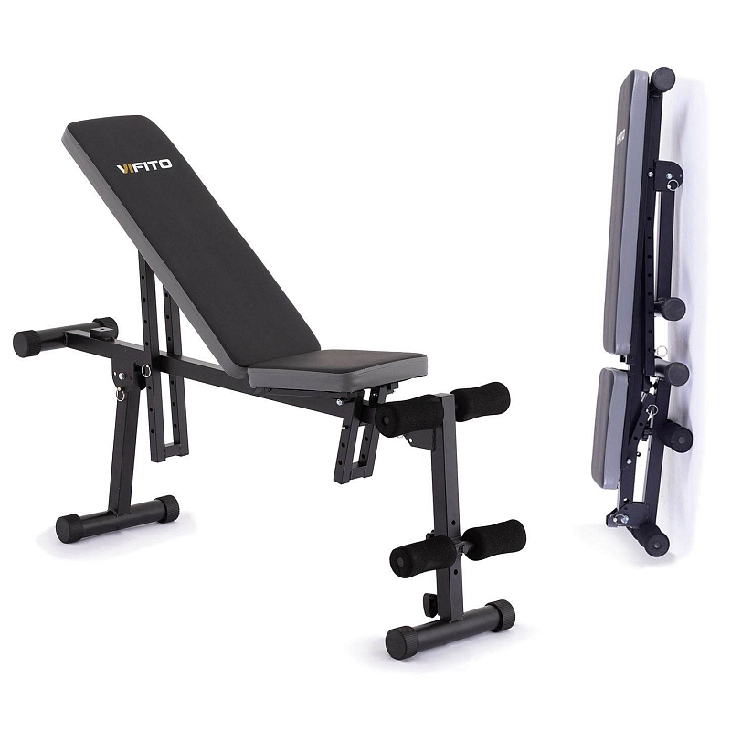 Šikovná sklápěcí lavice na domácí bench press s nastavitelnou výškou stojanu!...
