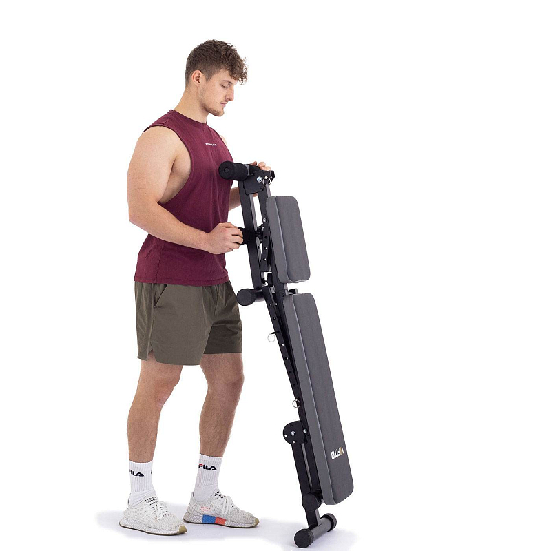 Posilovací lavici VIFITO U30 lze kombinovat s činkovými stojany, posilovací klecí či jen sadou jednoručních činek. Vyberte si z široké nabídky příslušenství a vytvořte si sestavu splňující vaše nároky. Jednoduché, rychlé a bezpečné polohování umožňuje snadnou změnu polohy lavice. Díky možností složení, lavice zabírá minimální prostor při skladování, můžete ji tak například uschovat pod postel, nebo za skříň.