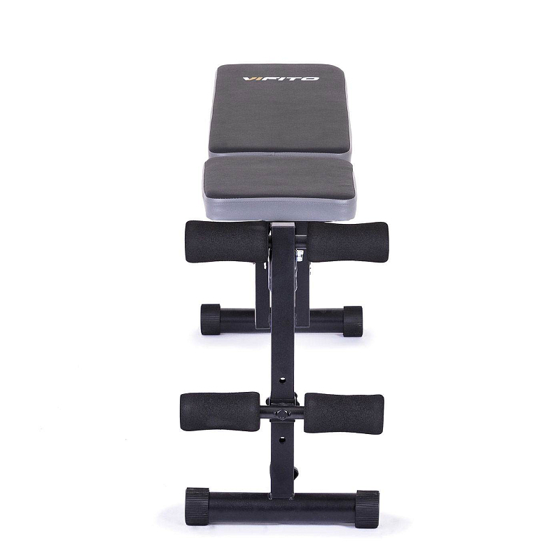 Posilovací lavice VIFITO U30 je vhodná především pro začátečníky, ale i pokročilejší uživatele. Díky možnosti negativního sklonu lze lavici využít na cvičení břicha, nastavitelná opěrka nohou umožní optimální polohu. Odolné dvouvrstvé čalounění zaručuje komfortní cvičení.