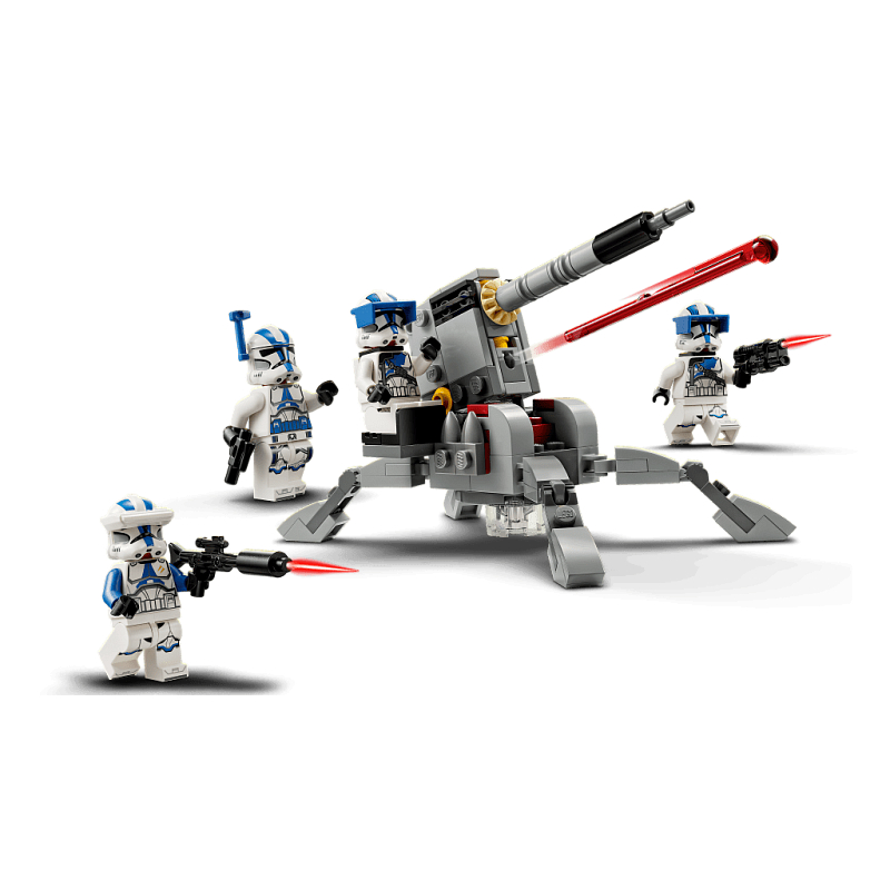 • Akční stavebnice – Bitevní balíček klonovaných vojáků z 501. legie od LEGO® Star Wars™ (75345) dětem umožní postavit si vlastní jednotku klonovaných vojáků a přehrávat si akční scény ze seriálu Star Wars: Klonové války • 4 minifigurky LEGO® Star Wars™ – Důstojník 501. legie s blasterovou pistolí, klonovaný specializovaný voják 501. legie s blasterovou puškou a 2 vojáci těžké pěchoty 501. legie s blastery • Sestavitelný protivozidlový kanón AV-7 – AV-7 má nastavitelné nohy, zvedací dělo, pružinový vystřelovač a sedadlo pro minifigurku LEGO® • Nápad na dárek pro fanoušky Star Wars™ od 6 let – Darujte tuto stavebnici se 119 dílky k narozeninám, Vánocům či jakékoli jiné příležitosti dětem, které milují seriály Star Wars: Klonové války a Star Wars: Vadná várka • Hry na cesty – Kanón měří přes 7 cm na výšku, 6 cm na šířku a 13 cm do hloubky. Kompaktní stavebnice se vejde dětem do batůžku a bude po ruce všude, kam se vydají • Interaktivní digitální stavění – Aplikace LEGO® Builder s návody na stavění dětem umožňuje přibližovat, otáčet a vizualizovat si digitální verzi jejich modelu, zatímco na něm pracují • Stavebnice LEGO® Star Wars™ pro všechny věkové kategorie – Stavebnice od LEGO Star Wars se hodí pro děti a dospělé fanoušky, kteří si chtějí přehrávat kultovní scény, vymýšlet nové akční příběhy nebo vystavovat modely • Prémiová kvalita – Dílky LEGO® splňují přísné oborové standardy kvality, takže umožňují jednoduché a bezpečné spojování do robustních modelů • Zajištění bezpečnosti – Kostky LEGO® testujeme téměř všemi představitelnými způsoby, abychom zajistili, že vyhovují přísným bezpečnostním normám