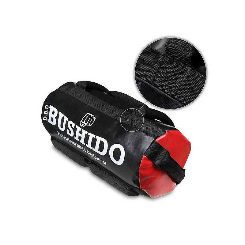 Sandbag DBX BUSHIDO 5-35 kg je výborný díky své regulaci váhy. Sand bag se dodává prázdný a tuto vlastnost určitě ocení uživatel, který chce třeba cvičit na dovolené. V sestavě je dodáván i s třemi vysoce odolnými vaky, které lze naplnit až do hmostnosti 12 kg. Ideální náplní je písek nebo jemný štěrk. Sandbag Bushido je osazen 7 úchopy které jsou vyplněné materiálem odolným proti zlomení. Každý úchop je přešitý extrémně pevným nylonovým popruhem o síle tahu až 300 kg!