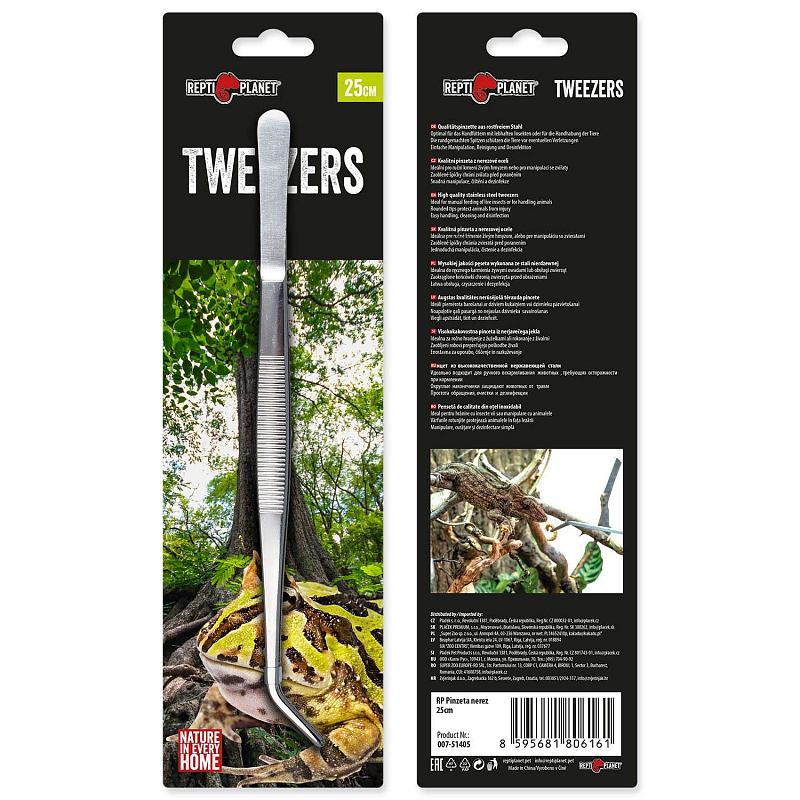 Kvalitní pinzeta z nerezové oceli. Ideální pro ruční krmení živým hmyzem nebo pro manipulaci se zvířaty.