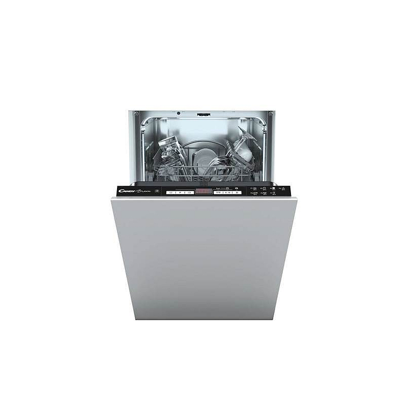 myčka plně integrovaná, šíře 45cm, 9 jídelních souprav, digitální displej, 7 programů, elektronická regenreace změkčovače vody - nižší spotřeba soli, LED ukazatele, Silent Plus - tichý chod - hlučnost 49 dB(A), Energetická třída E, bílá. Rozměry výrobku v x š x h 82 x 44,5 x 54 cm