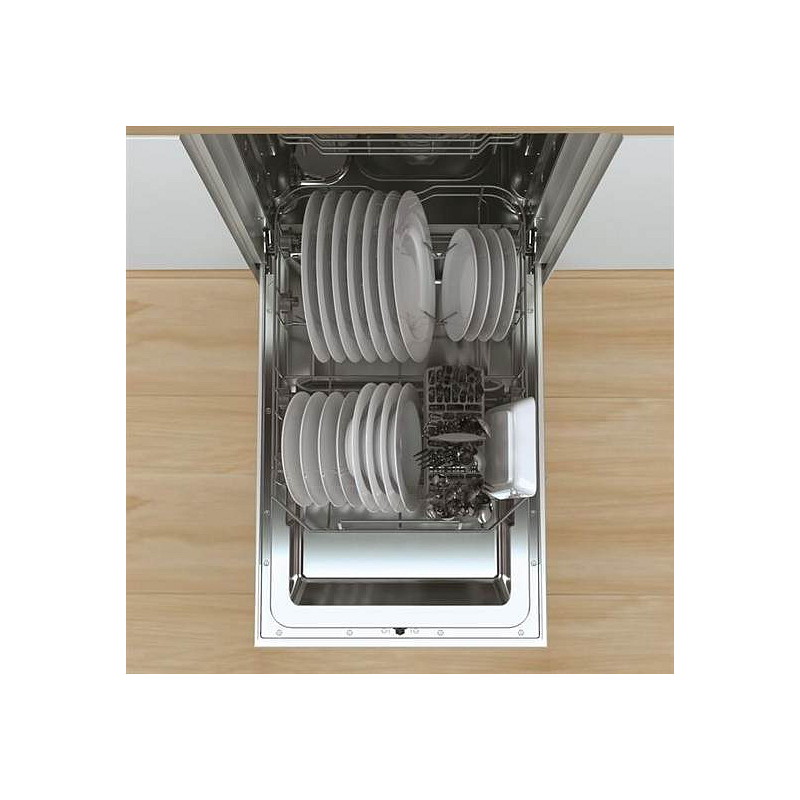 myčka plně integrovaná, šíře 45 cm, 9 jídelních souprav, 2 koše, LED ukazatele, LED kontrolky, Silent Plus - tichý chod - hlučnost 49 dB(A), A+, bílá. Rozměry výrobku v x š x h 82 x 44,5 x 54 cm