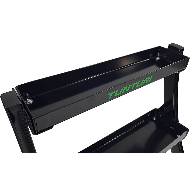 Ať už doma, nebo v posilovně, správný tréninkový prostor potřebuje kettlebelly. A pro účely bezpečnosti a snadného používání je příjemné mít fitness vybavení úhledně a přehledně uklizené. Toho lze dosáhnout s tímto praktickým stojanem na kettlebell Tunturi. Profesionální a pevný stojan se třemi policemi pro uložení různých kettlebellů. Užitečný je k postavení ke stěně, ale lze jej umístit i doprostřed prostoru.