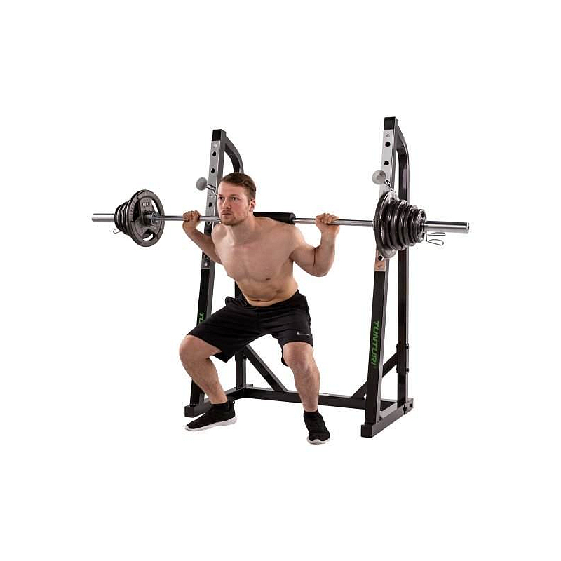 Stojan na dlouhou osu WT40 Squat Rack na volnou činku s nastavitelnou výškou. Ideální konstrukce pro domácí používání na dřepy, lýtka apod. Konstrukce nabízí nosnost 160 kg. Práškový nástřik rámu.