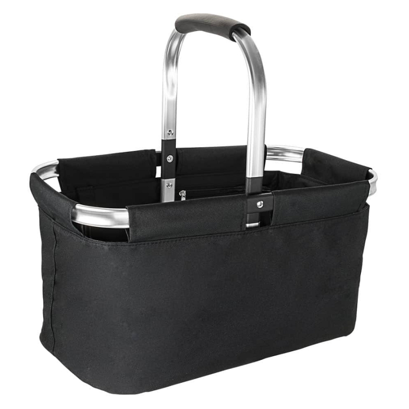 Nákupní skládací košík využijete na každodenní nákupy, ale je vhodný také na pikniky, na zahradu, chatu či chalupu. Nákupní košík je vyroben z pevného omyvatelného textilu a lehké hliníkové konstrukce. Uvnitř nákupního košíku je praktická kapsička na zip. Pohodlí při nošení zajišťuje držadlo s měkkým úchytem. Velikou předností nákupního košíku je skládací mechanismus, který umožňuje rychlé složení a rozložení. Nákupní skládací košík má maximální nosnost 10 kg.