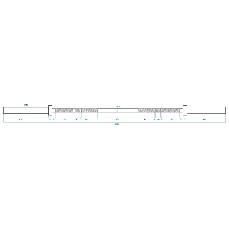 Průměr úchopové části je 30 mm a zajišťuje vysokou odolnost a pohodlí během tréninku. Použitý proces chromování hřídele je zárukou zachování jejího vzhledu po dlouhou dobu jejího používání a také je nejlepší ochranou proti korozi.