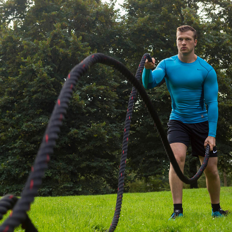 Potřebujete posílit vytrvalost? Toto bojové lano Tunturi vám s tím pomůže! Dejte si před sebe dvě lana, připevněte je k závažím nebo speciální kotvě na stěně či podlaze, uchopte druhé konce lan a pak s nimi postupně švihejte. Ideální cvičení pro zvýšení vaší vytrvalosti! Bojová lana se pravidelně používají při crossfitu, bootcampu nebo kruhovém tréninku. Fitness lano je velmi pevné a materiál zvládne všechny typy počasí. Perfektní pro vnitřní i venkovní použití!