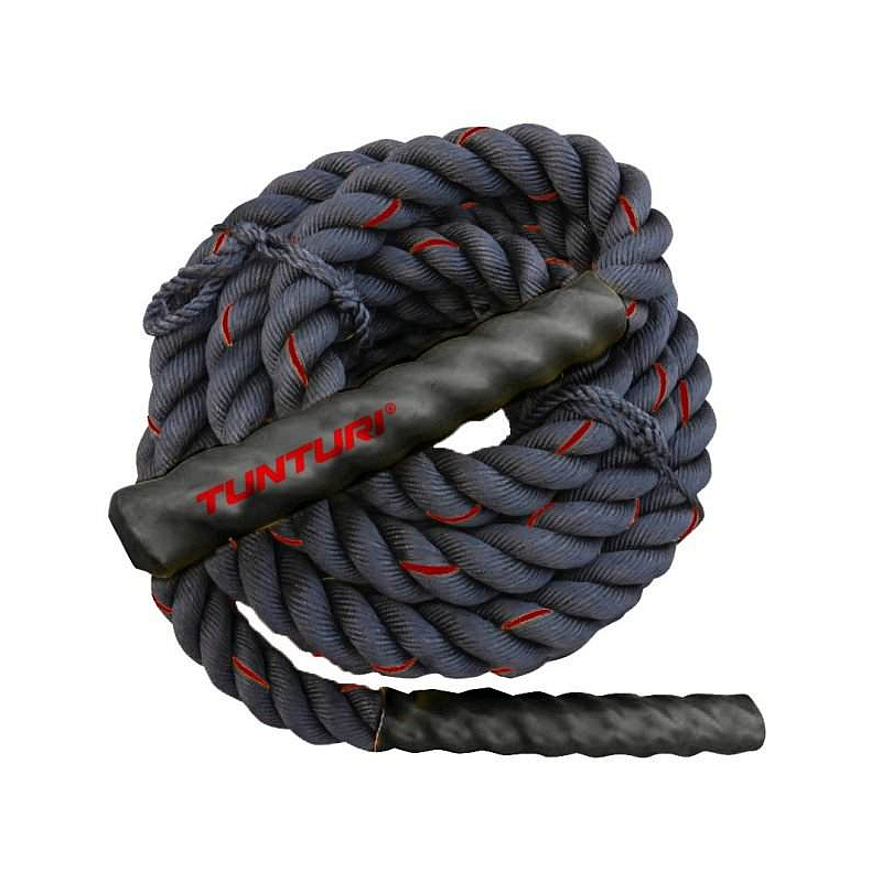 Tunturi Battle Rope - posilovací lano pro trénink síly, výdrže a výbušnosti. Posilovací lano se hojně používá v mnoha sportovních odvětvích, nejen v bojových sportech. Lano je skvělou pomůckou pro posilování horní poloviny těla a zárověň zlepšování koordinace těla a zapojení celého těla do silového tréninku. Stejně tak jako v boxu a jiných bojových sportech, kde musíte zapojit celé tělo, abyste dosáhli ideálního výkonu, musíte i v tréninku s touto pomůckou pracovat horní i dolní částí těla, aby trénink byl co nejefektivnější. Lano nabízí možnost mnoha různých cviků v různých polohách vestoje nebo vkleče. Lano je na obou koncích opatřeno návlekem pro pohodlné a praktické uchopení při cvičení.