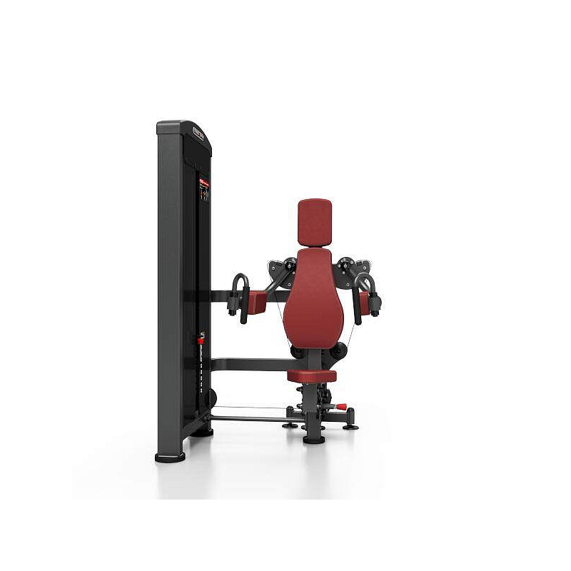 Stroj pro posílení deltových svalů MARBO MP-U228 je nekompromisní, profesionální vybavení pro Vaší posilovnu. Pro výrobu byly zvoleny ocelové profily 120x60x3mm a 80x40x3mm, které zaručují nečekanou trvanlivost. Zátěž tvoří 8ks 5kg cihel. Celková váha závaží dodávána se strojem je tedy 40kg s možností rozšíření až do 160kg. Ramena mají na sobě nezávislý chod. To zaručuje vysokou efektivitu tréninku. Veškeré nastavení se provádí červenými, pružinovými kolíky. Sedadlo má čtyři polohy. Polstrovaní je ze syntetické kůže sešité režnou nití značky COATS vyplněné tvrdou pěnou, to celé ja na 3mm hrubé, ocelové desce. Tichý chod zajištuje zakrytování černým plastem, z přední části je kryt opatřen průhledem pro snadné nastavení požadovaného počtu cihel. Stroj je navíc opatřen velikou samolepkou, která instruuje cvičence, jaké cviky jdou na stroji provádět a které skupiny svalů daný cvik posiluje.