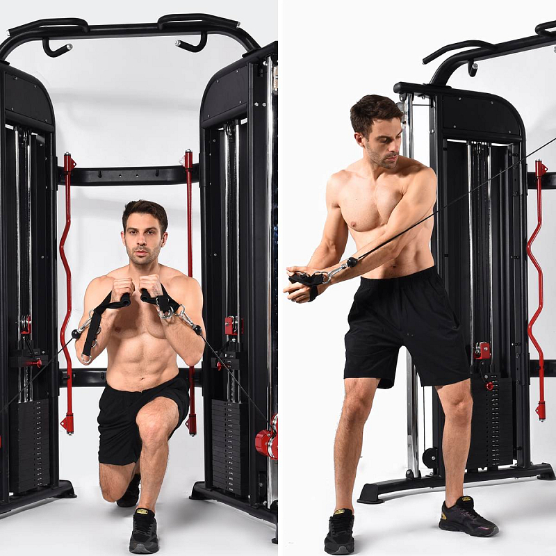 Dvě posuvné kladky posilovacího stroje HMS ARES 1 vám dávají možnost provádět neomezený počet cviků pro všechny svalové partie. Jeho ergonomický tvar, nabízí dostatečný prostor pro cvičení, ať už používáte jednu kladku, nebo obě najednou. Při správném nastavení jej mohou snadno používat dvě osoby současně.