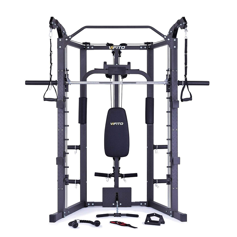 Součástí konstrukce jsou dvě protisměrné kladky, peck-deck pro posilování prsních svalů, spodní kladka s opěrkou na nohy, například pro veslování a hrazda. V přední části konstrukce je možné využít výškově nastavitelné stojany pro velkou činku a bezpečnostní dorazy pro případné selhání při cvičení.