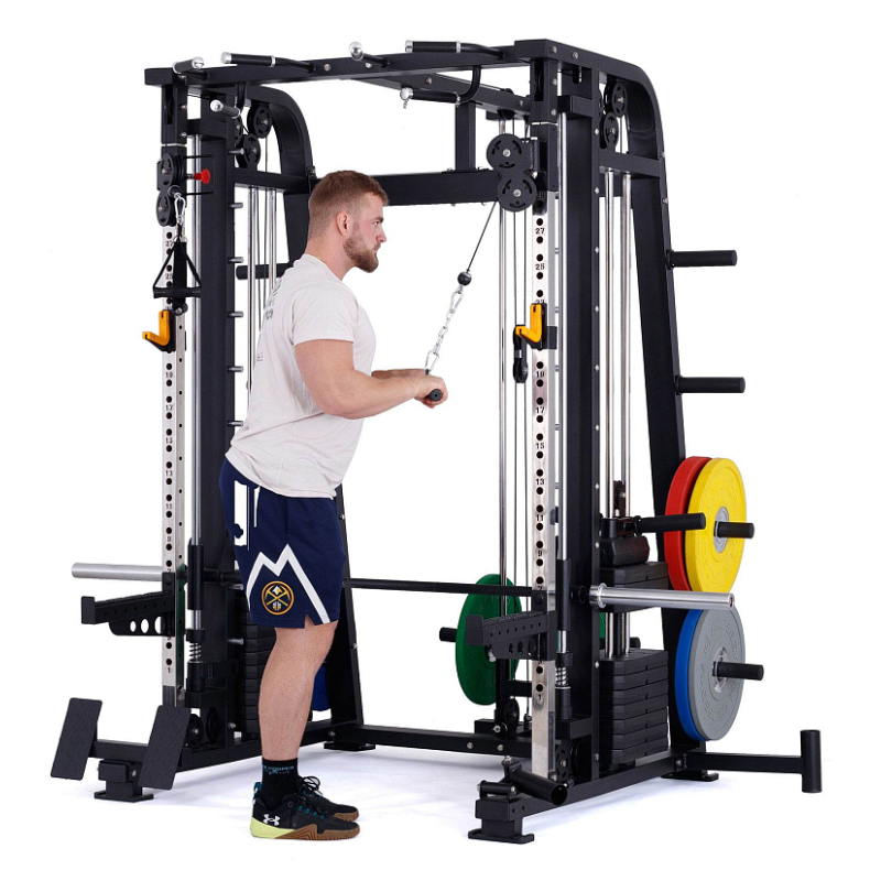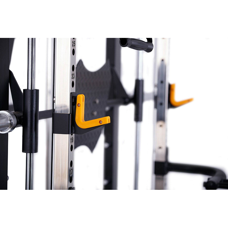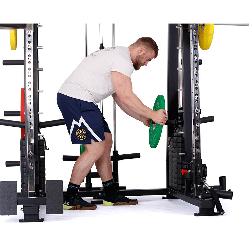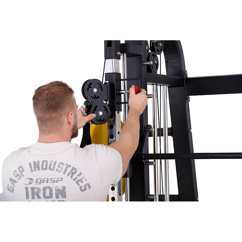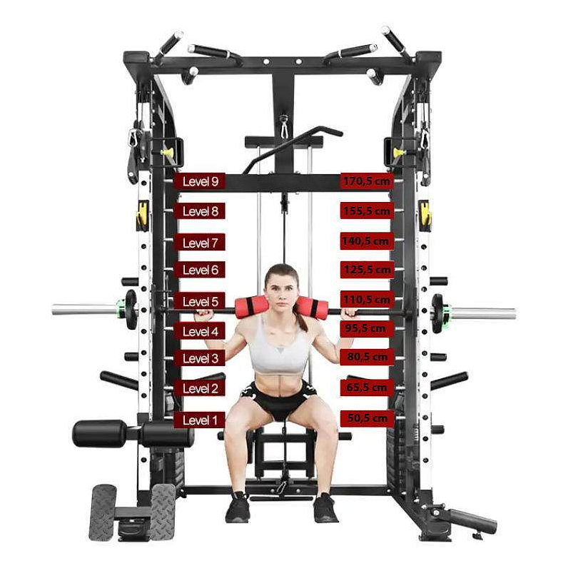 Nosnosti: uživatel max. 180 kg, háky a dorazy na kotouče 250 kg, hrazda 180 kg, multipress 200 kg, trny na odkládání kotoučů každý 60 kg, nosnost kladek 100 kg.