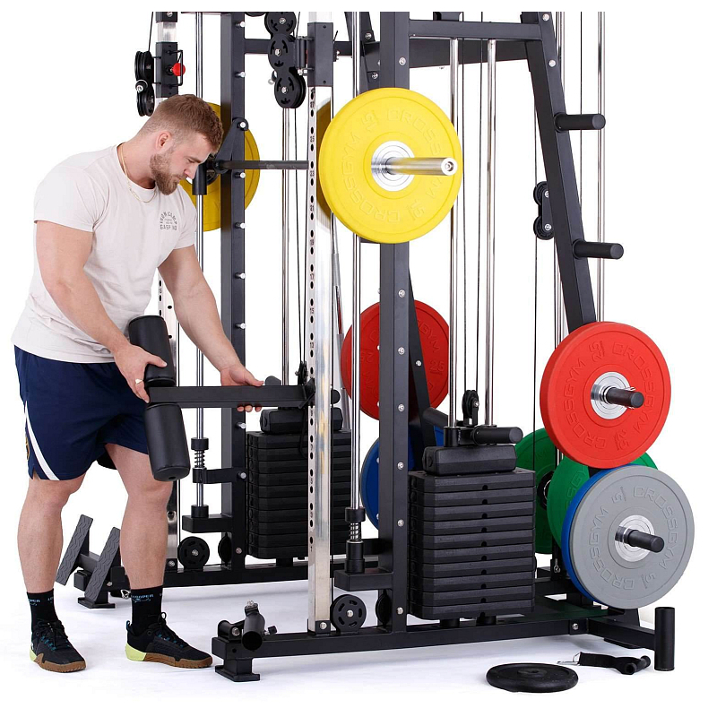| Možnosti nastavení: | Nastavitelná výška stojanů, Možnost posuvu lavice vůči stojanu, Nastavitelný peck-deck, Nastavitelné opěrky na nohy |