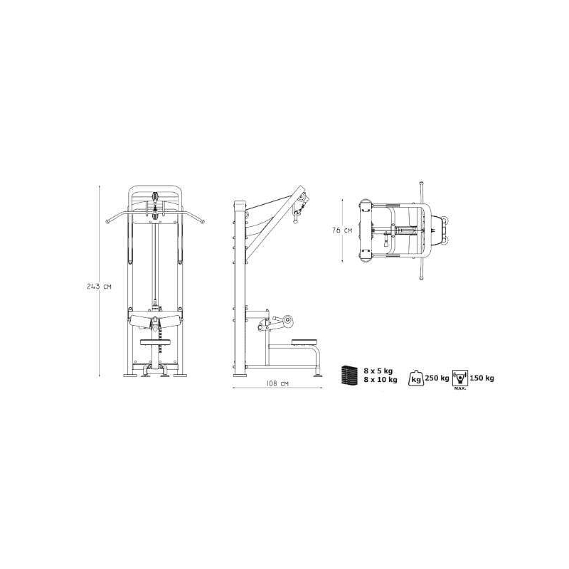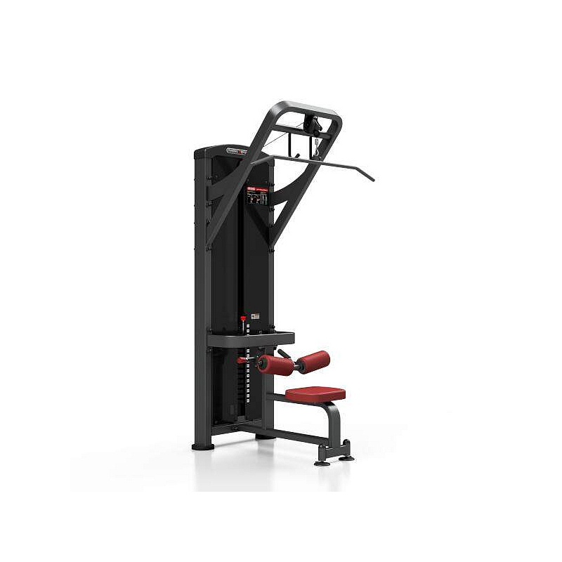 Horní kladka MARBO MP-U206 je nekompromisní, profesionální vybavení pro Vaší posilovnu. Pro výrobu byly zvoleny ocelové profily 120x60x3mm a 80x40x3mm, které zaručují nečekanou trvanlivost. Zátěž tvoří 8ks 5kg a 8 ks 10kg cihel. Celková váha závaží dodávána se strojem je tedy 120kg. Tichý chod zajištuje zakrytování černým plastem, z přední části je kryt opatřen průhledem pro snadné nastavení požadovaného počtu cihel. Kladka je ve výšce 230cm a tak mohou na stroji cvičit i jedinci o výšce 200cm. Polstrovaní je ze syntetické kůže sešité režnou nití značky COATS. Zarážka nohou je nastavitelná do tří poloh. Stroj je navíc opatřen velikou samolepkou, která instruuje cvičence, jaké cviky jdou na stroji provádět a které skupiny svalů daný cvik posiluje.