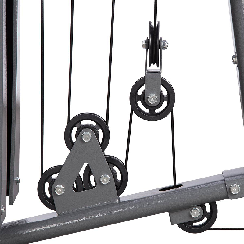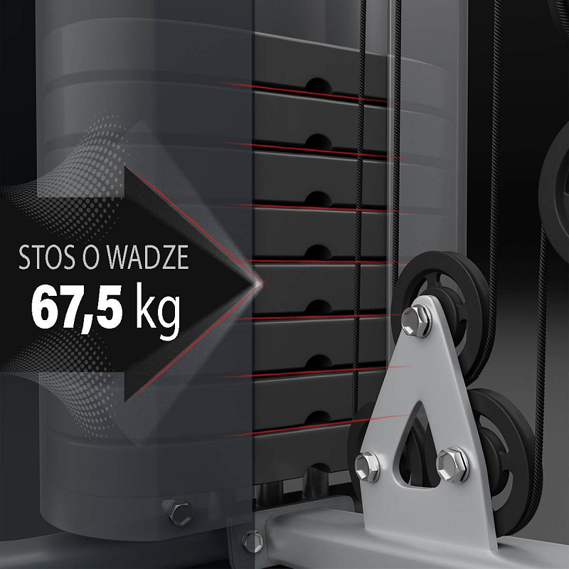 Multifuknční věž umožňuje rozvoj všech svalových skupin: prsních a zádových svalů, posturální, předloktí, ramena, biceps, triceps a také umožňuje trénovat svaly nohou.