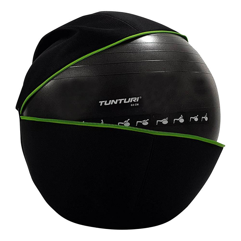 S tímto potahem Tunturi Gymball Cover lze sedací míč snadno proměnit v pohodlnou kancelářskou židli. Když na takovém míči sedíte, vaše tělo musí neustále hledat novou rovnováhu. Tímto způsobem nevědomky trénujete jádro těla a zádové svaly. Potah lze omotat kolem gymballového míče proti prasknutí o průměru 65 cm. Můžete jej uzavřít pomocí jasně zeleného zipu. Obal na gymball je na spodní straně opatřen zatěžkávací částí. Je praktický, protože zabraňuje kutálení míče, když na něm sedíte.
