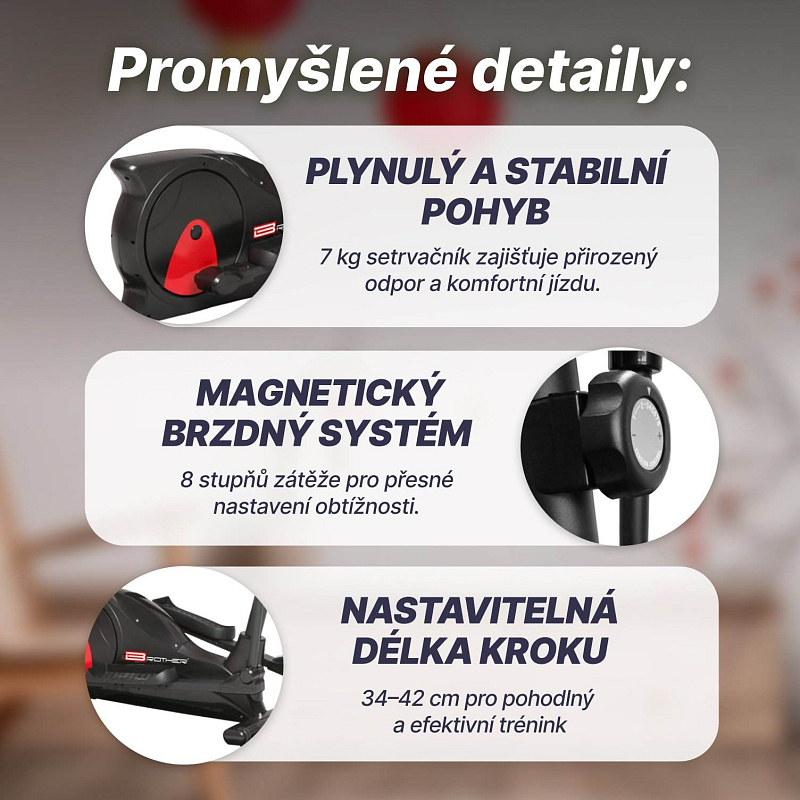 Magnetický eliptical BE51, je robustní posilovací stroj s následujícími parametry :