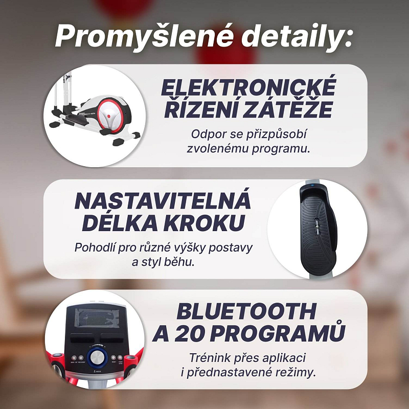 Eliptical pro domácí využití, nosnost uživatele do 125 kg. Bluetooth...