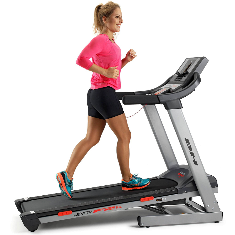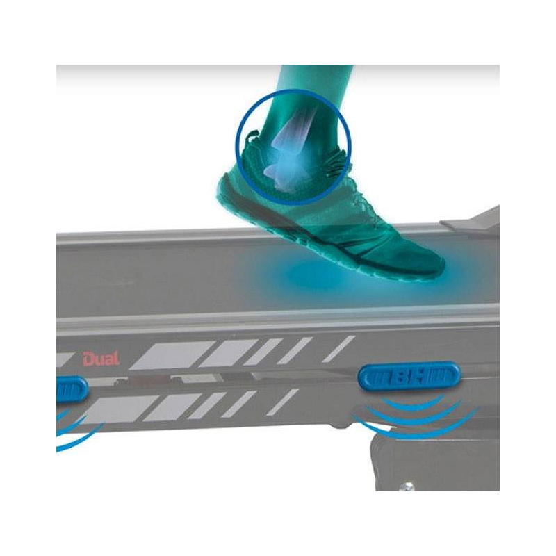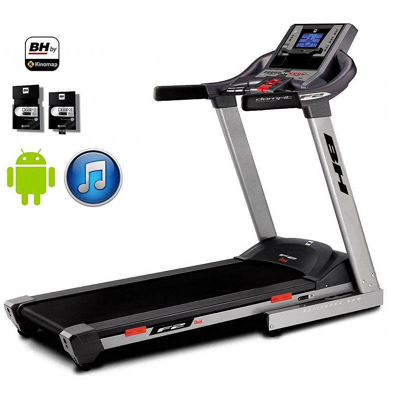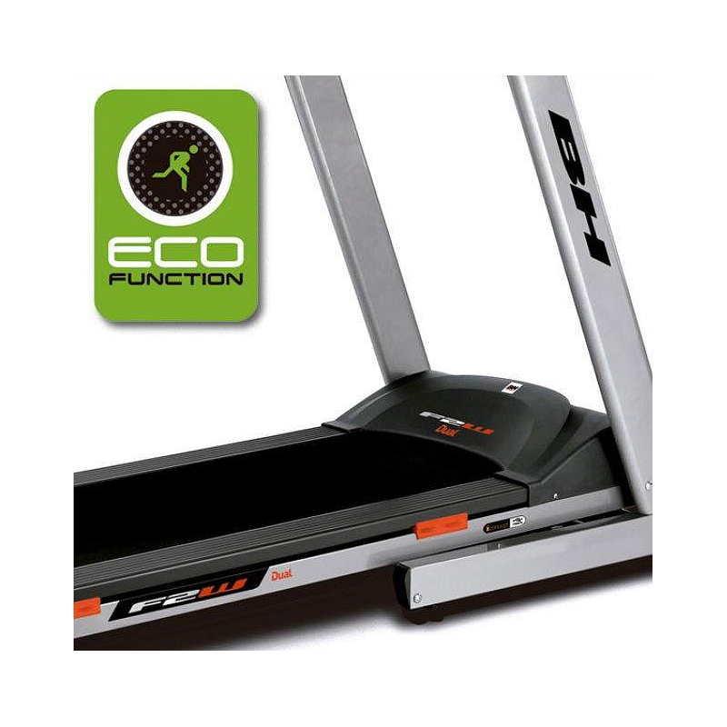 BH Fitness F2W DUAL je moderní běžecký pás vybavený tichým motorem s maximálním výkonem 2,02 kW (2,75 HP). Trenažér poskytuje rozsah rychlosti 1-18 km/h, sklon běžecké plochy lze elektronicky nastavit v rozmezí 0 - 12 %. Pás disponuje běžeckou plochou s rozměry 135 x 51 cm. Samotná běžecká plocha trenažéru je odpružená systémem "6 elastomery + Run+", běhání a chůze jsou tak šetrné vůči tělesným kloubům.