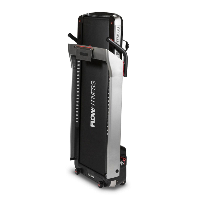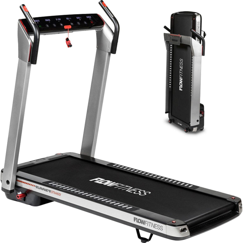 Flow Fitness DTM400i je běžecký pás, který nezabere mnoho místa. Jedná se o velmi skladný, ale plně vybavený trenažér pro začátečníky a mírně pokročilé sportovce. Pás lze jednoduše složit na "placato", kdy je jeho výška pouhých 27 cm.
