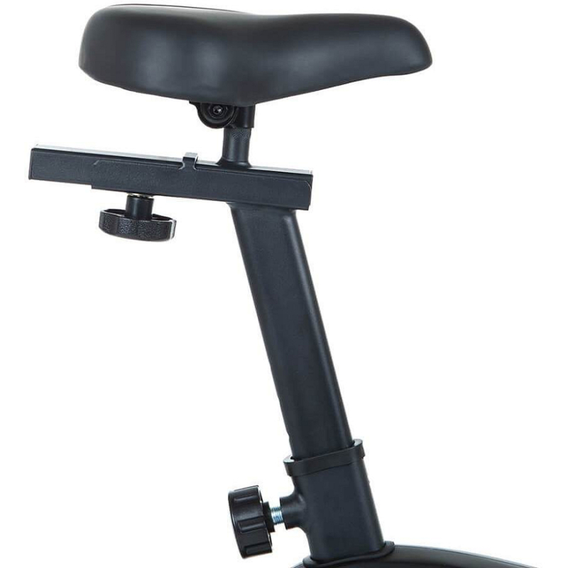 Ergonomické sedlo taky přispívá k pohodlnému tréninku, je výškově nastavitelné pro všechny osoby od 155 do 190 cm, navíc se dá posunout v horizontálním směru a také upravit jeho sklon. Víceúchopová řídítka umožní střídat různé styly jízdy. Uvolněný, sportovní, orientovaný na výkon apod. Vyrovnávače nerovnosti zajistí stabilitu při cvičení a transportní kolečka usnadní manipulaci se strojem, Napájení je zajištěno tužkovými bateriemi, nebudete závislí na přítomností zásuvky.