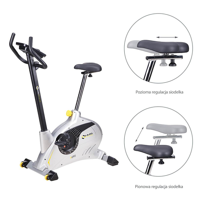 Konstrukce modelu M6993 je vyrobena ze solidní oceli, díky které je nosnost trenažéru až 120 kilogramů. Řídítka s elektrodami pro snímání srdečního tepu, je možné naklápět. Sedlo je polohovatelné vertikálně do 9-ti poloh a v horizontální rovině je umístěno na kolejnici pro plynulý posun. Vzdálenost středu sedla od pedálů tak jde nastavit v rozsahu 64 - 90 centimetrů. Přední stabilizátor je vybaven kolečky pro snadné přesouvání. Zadní stabilizátor zase nabízí výškově nastavitelné podložky pro vyrovnání trenažéru do roviny.