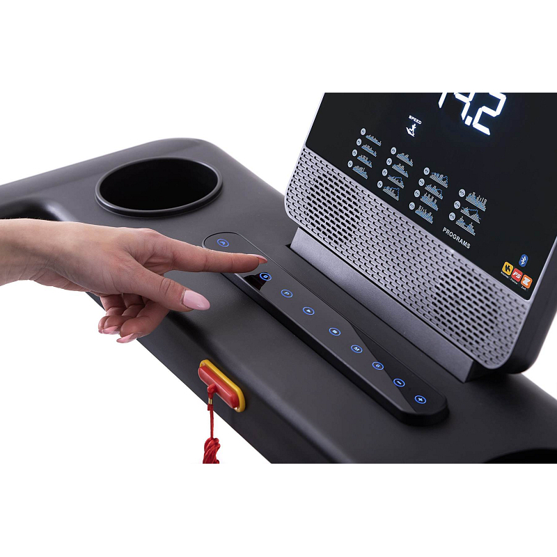 Rychlost běhu a sklon si můžete nastavovat během tréninku ručně tlačítky, případně si můžete si vybrat některý z 15 přednastavených tréninkových programů. Pro maximální efektivitu tréninku můžete využít měření tepové frekvence skrz dlaňové snímače tepové frekvence.