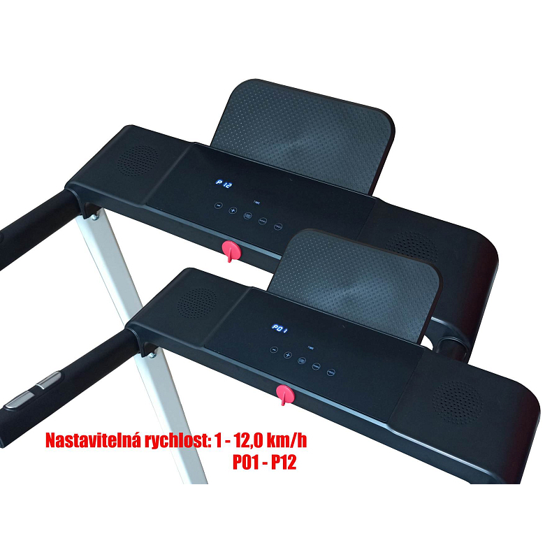 Domácí běžecký pás s jednoduchým ovládáním a kvalitní konstrukcí s 6bodovým odpružením. Motor o výkonu až 2 HP umožňuje vyvinout rychlost až 12 km/h, díky čemuž je vhodný pro udržování kondice mírně i středně pokročilých běžců. Pás je doplněn o přehledný displej, snímač tepové frekvence, bezpečnostní rychlobrzdu a stojánek pro tablet či telefon.