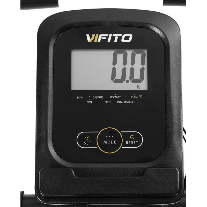 VIFITO Xfit 30 nabízí jednoduchý přehledný 3" LCD displej, který vám vyobrazí všechny základní hodnoty pro váš trénink. Umožní vám sledovat váš trénink v reálném čase pomocí dat monitorujících váš čas, vzdálenost, spálené kalorie a srdeční frekvenci. Pro maximální efektivitu tréninku můžete využít měření tepové frekvence skrz dlaňové snímače tepové frekvence (tzv. Hand pulse) na madlech trenažéru.