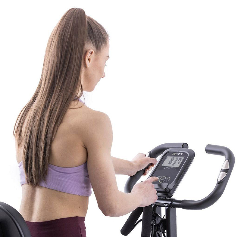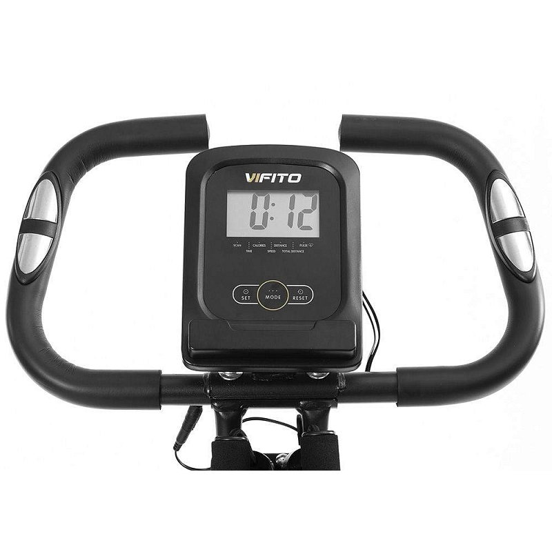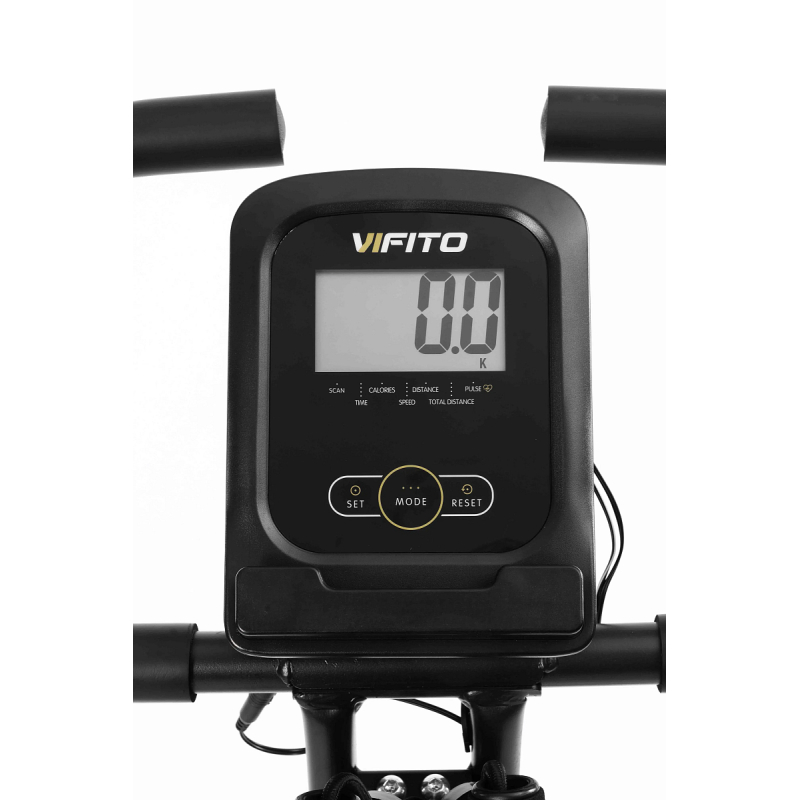 VIFITO Xfit 50 nabízí jednoduchý přehledný LCD displej, který vám vyobrazí všechny základní hodnoty pro váš trénink. Umožní vám sledovat váš trénink v reálném čase pomocí dat monitorujících váš čas, rychlost, vzdálenost, celkovou ujetou vzdálenost, spálené kalorie a srdeční frekvenci. Pro maximální efektivitu tréninku můžete využít měření tepové frekvence skrz dlaňové snímače tepové frekvence (tzv. Hand pulse) na madlech trenažéru.