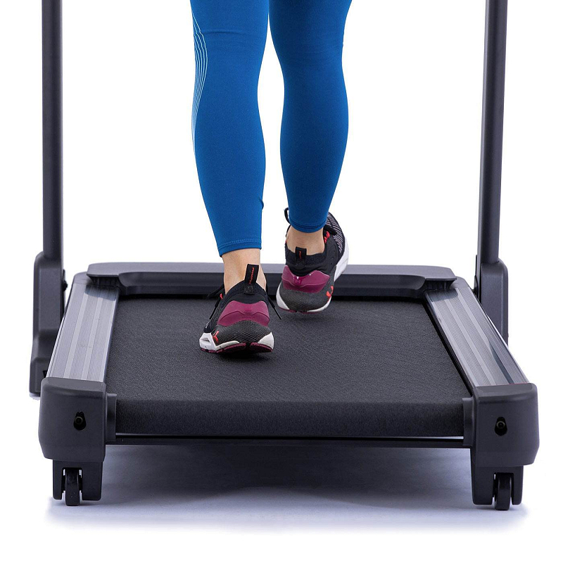 Pokud běžecký pás zrovna nepoužíváte, můžete jej jednoduše sklopit a ušetřit tak až 60% místa. Sklopení a manipulaci s pásem usnadňují i transportní kolečka.