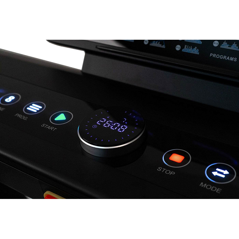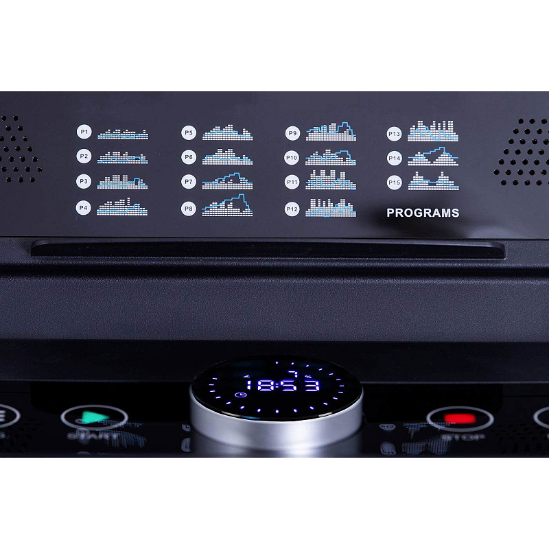 Rychlost běhu a sklon si můžete nastavovat během tréninku ručně tlačítky, případně si můžete si vybrat některý z 15 přednastavených tréninkových programů. Pro maximální efektivitu tréninku můžete využít měření tepové frekvence skrz dlaňové snímače tepové frekvence.