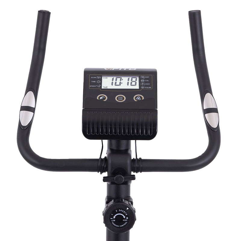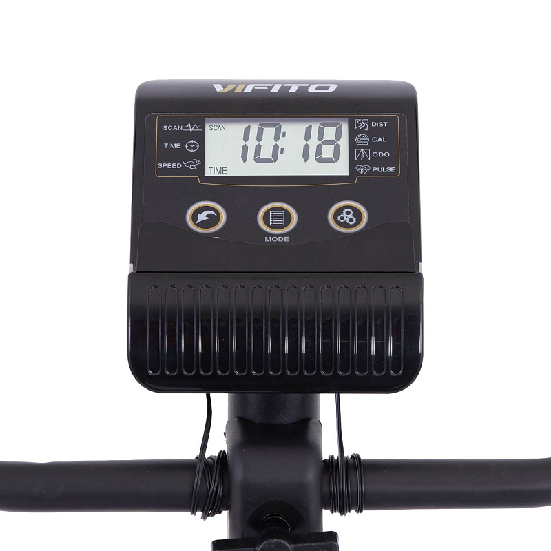 VIFITO Evo 200 nabízí přehledný 4,5" LCD displej, který vám vyobrazí všechny základní hodnoty pro váš trénink. Umožní vám sledovat váš trénink v reálném čase pomocí dat monitorujících váš čas, vzdálenost, spálené kalorie a srdeční frekvenci. Trénink si můžete zpestřit manuálním programem, ve kterém si přednastavíte odpočet kalorií, času a vzdálenosti. Pro maximální efektivitu tréninku můžete využít měření tepové frekvence skrz dlaňové snímače tepové frekvence (tzv. Hand pulse) na madlech trenažéru.