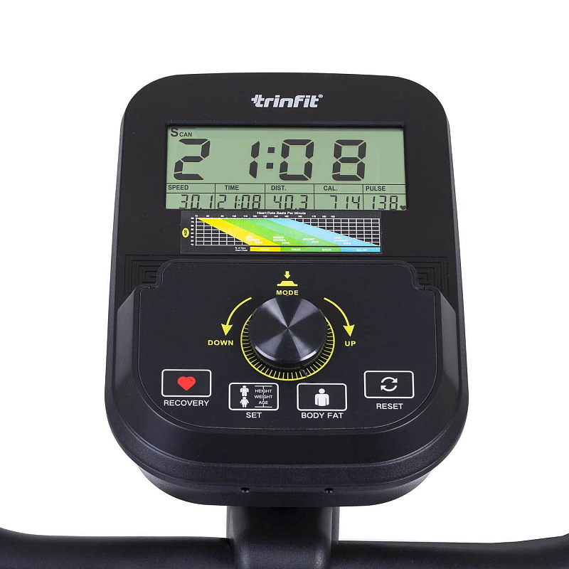 TRINFIT Vivo B400 nabízí přehledný LCD displej, který vám vyobrazí všechny základní hodnoty pro váš trénink. Umožní vám sledovat váš trénink v reálném čase pomocí dat monitorujících váš čas, vzdálenost, spálené kalorie, otáčky za minutu a srdeční frekvenci. Trénink si můžete zpestřit manuálním programem, ve kterém si přednastavíte délku tréninku, vzdálenost, počet spálených kalorií, nebo maximální hodnotu tepové frekvence (při překročení vás rotoped upozorní, abyste snížili intenzitu cvičení).