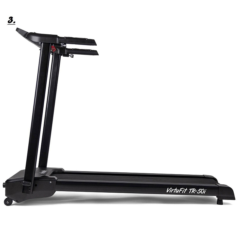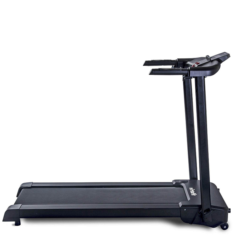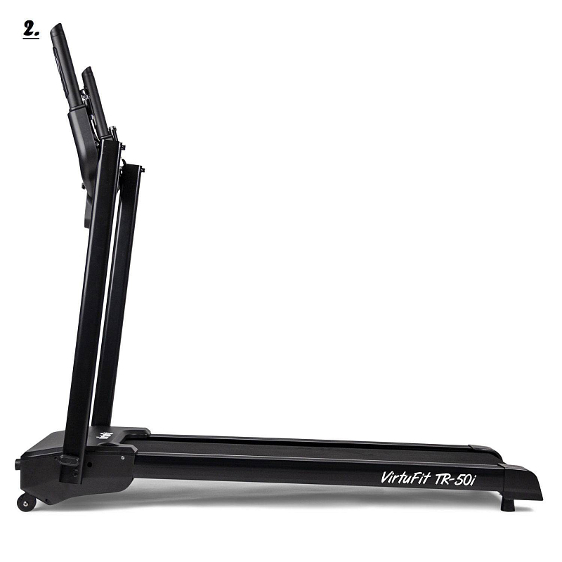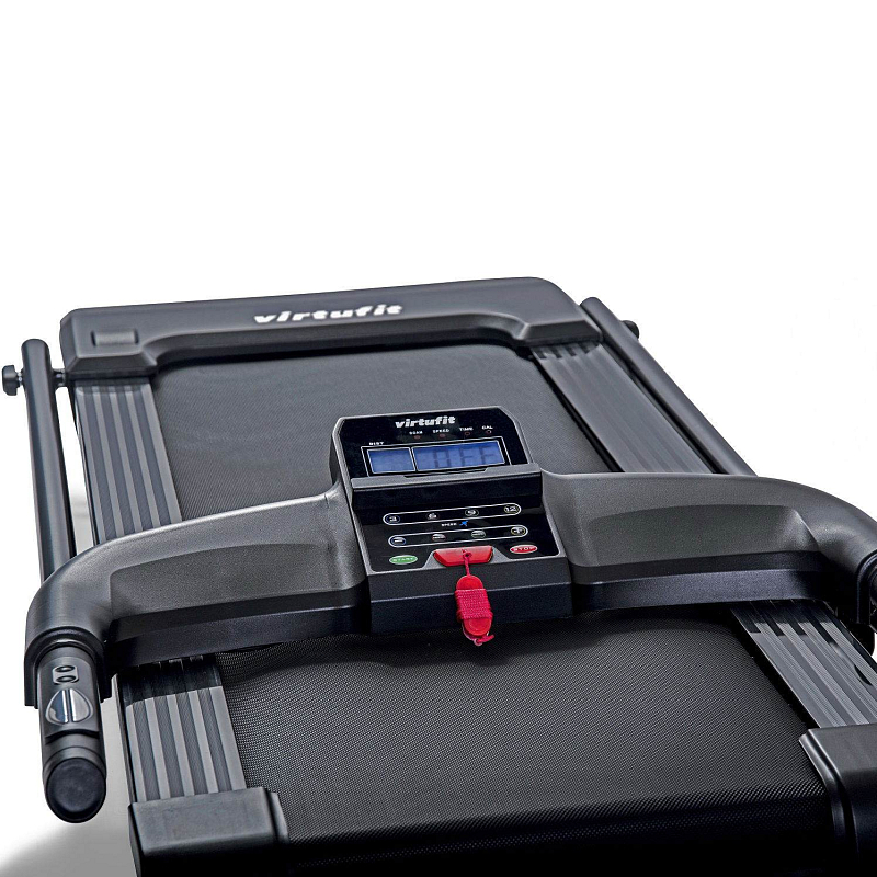 Trenažér VirtuFit TR-50i skládací je moderní běžecký pás, který je díky svým kompaktním rozměrům ideální volbou pro trénink v domácím prostředí. Pro maximální komfort je možné sklopit sloupky s konzolí a trenažér schovat například pod postel.