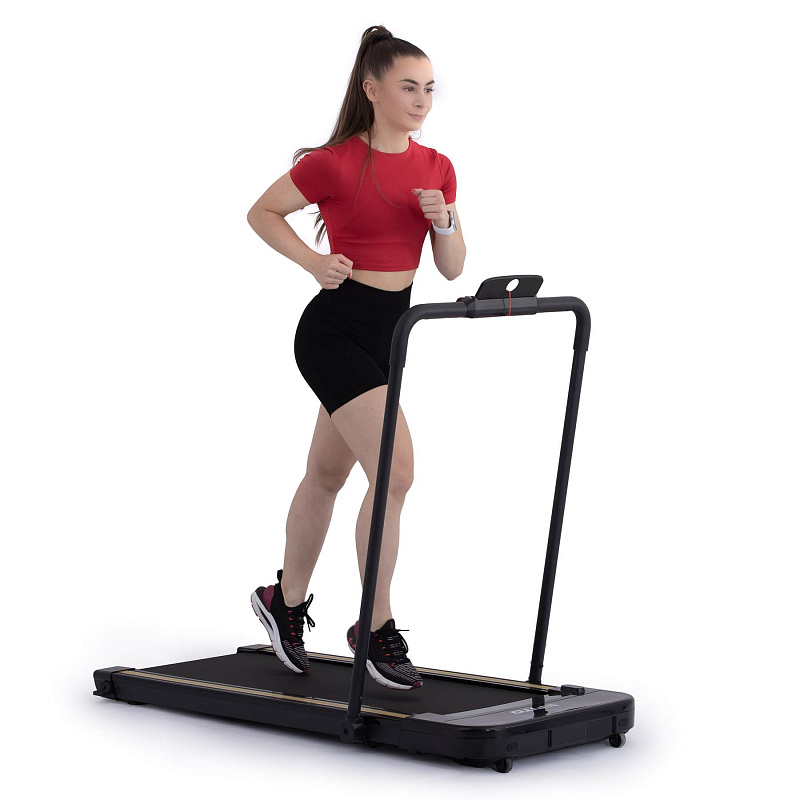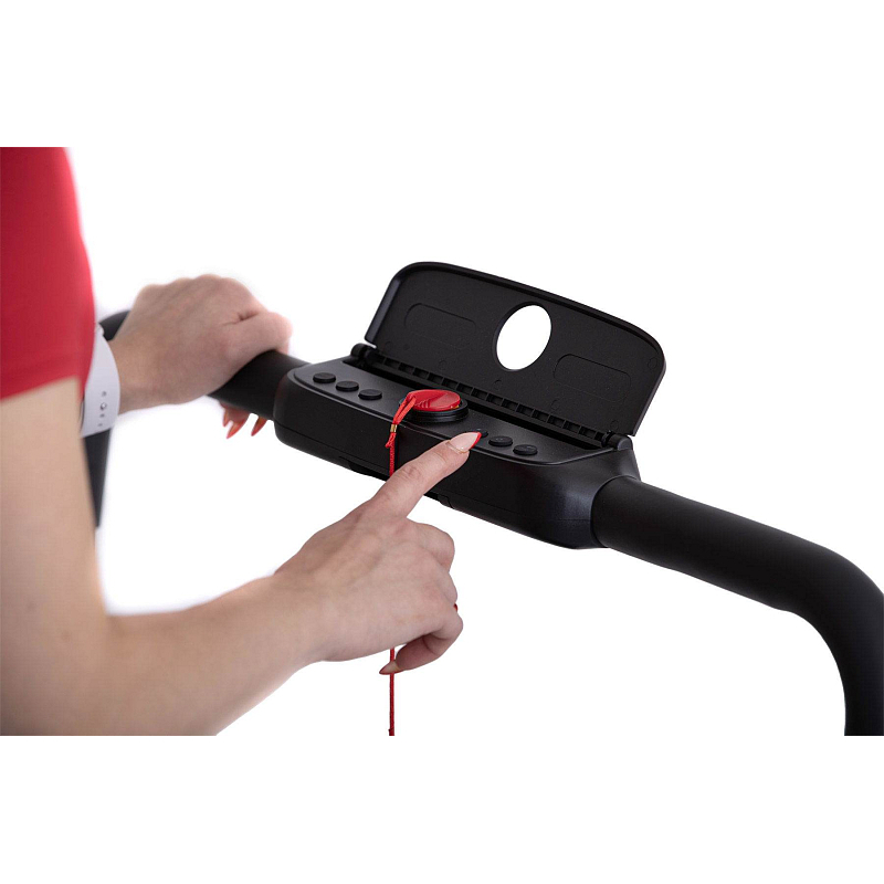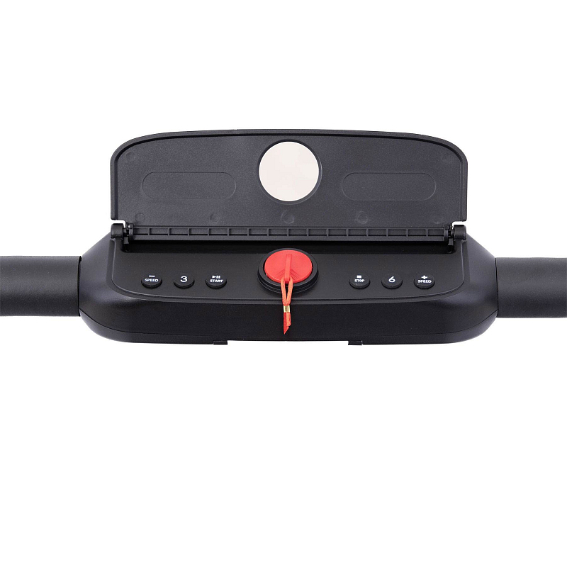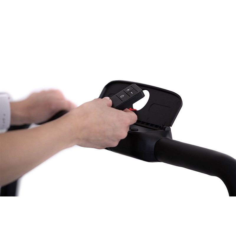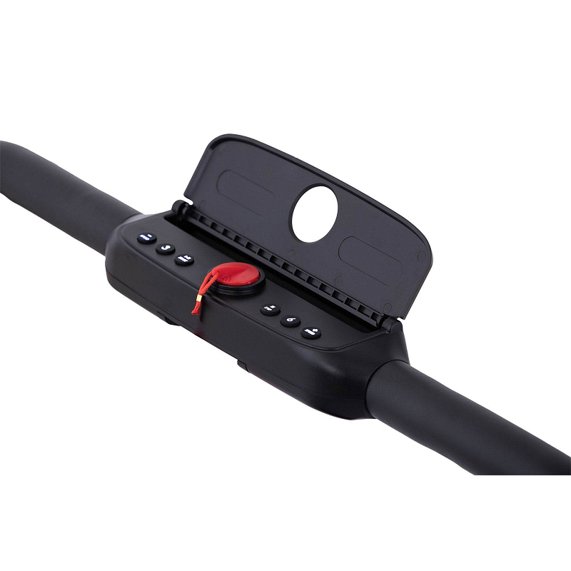 Rychlost běhu si můžete nastavovat během tréninku ručně tlačítky na panelu, nebo pomocí dálkového ovladače. Bezpečnost při chůzi/běhu zaručuje sklopné madlo, na kterém se zároveň nachází ovládací konzole.