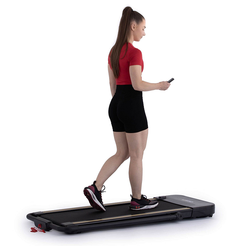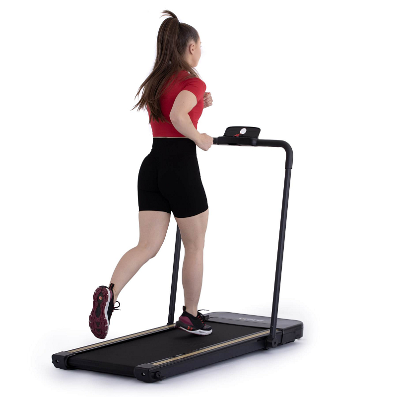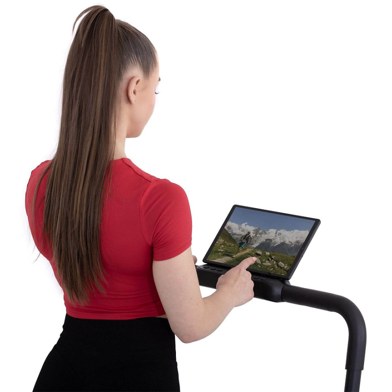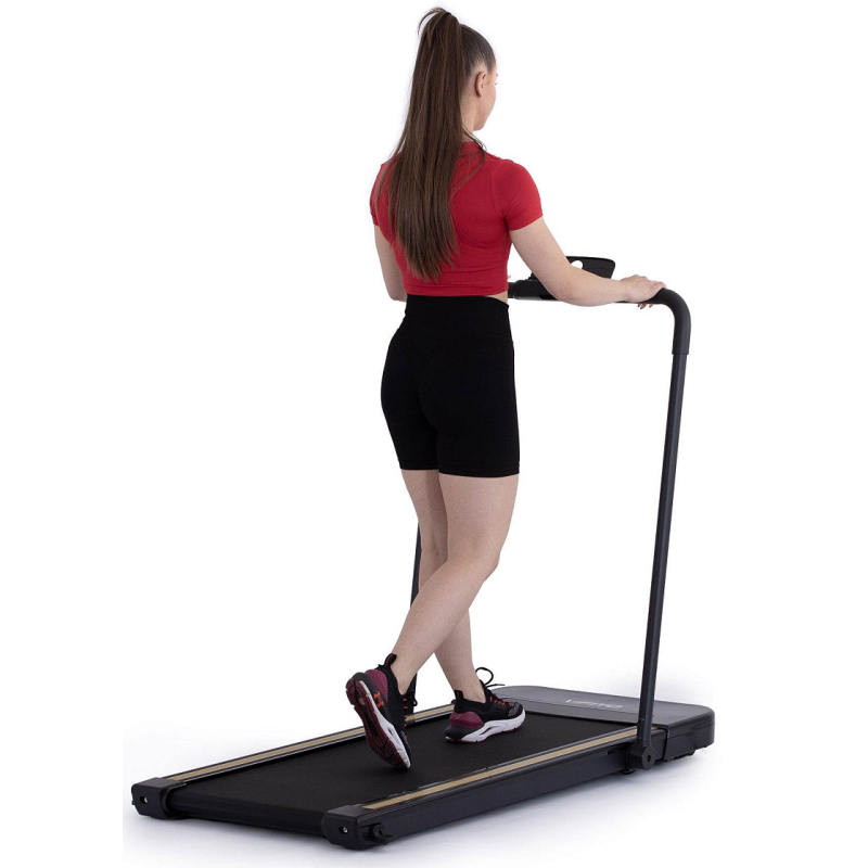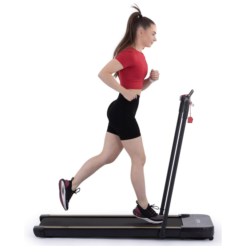 Rychlost běhu si můžete nastavovat během tréninku ručně tlačítky na panelu, nebo pomocí dálkového ovladače. Bezpečnost při chůzi/běhu zaručuje sklopné madlo, na kterém se zároveň nachází ovládací konzole.