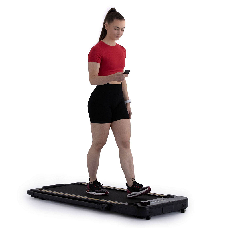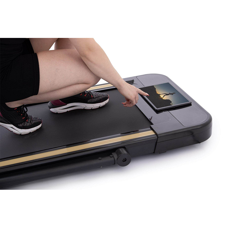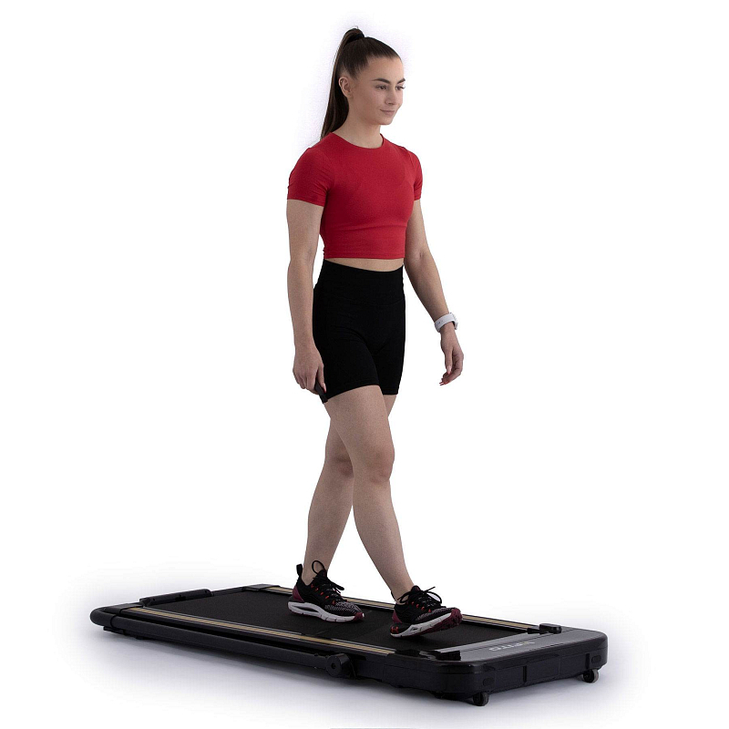 Díky pečlivě vyvinuté konstrukci a kvalitnímu odpružení běžecké plochy minimalizuje zatížení kloubů, vazů a můžete si tak užít příjemný a přirozený pocit chůze, či běhu. Pás je navíc opatřen systémem odhlučnění, který omezuje vibrace a přenos došlapů do podlahy. To zaručuje znatelně tišší chod oproti jiným modelům této cenové kategorie. Rozměry běžecké plochy jsou 110 x 42 cm.