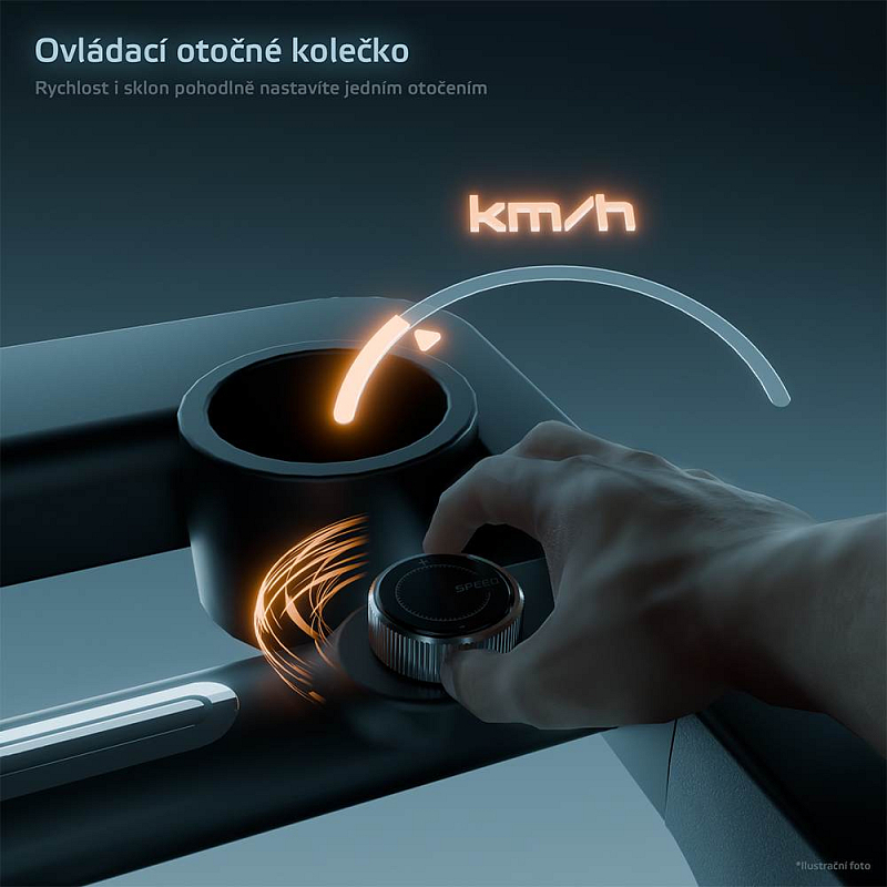 Ještě vyšší komfort pak zajišťuje promyšlený design, který nabízí nejen stojan na tablet, ale také na dva nápoje. Snadné ovládání je zaručeno díky praktickým otočným knoflíkům, díky kterým jednoduše nastavíte rychlost až na 18,8 km/h či již zmíněný sklon běžecké plochy, která samotná má 135 x 52 cm.