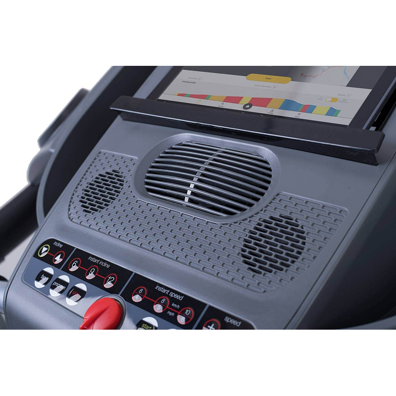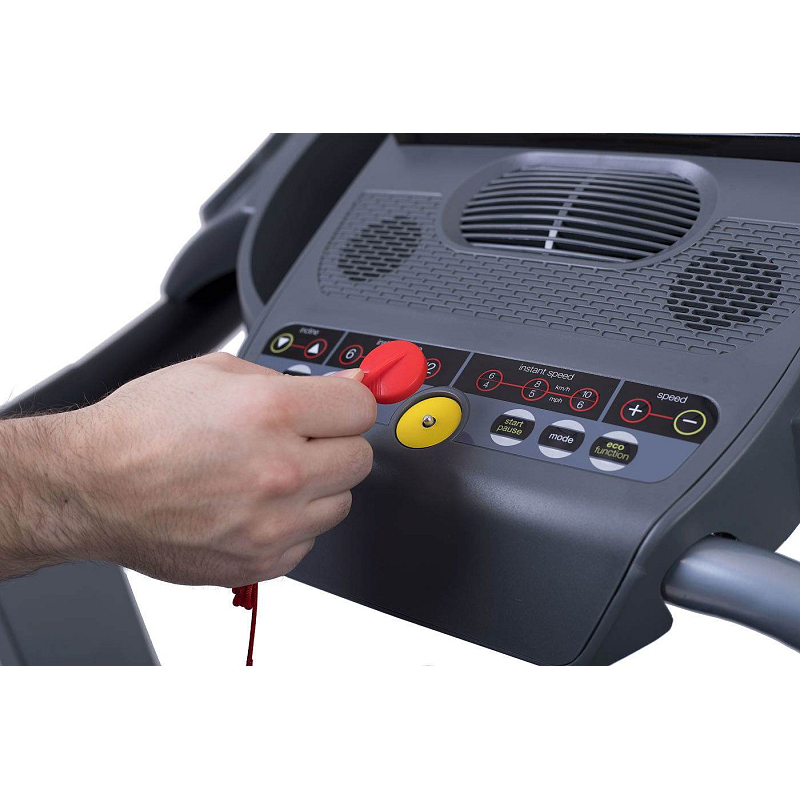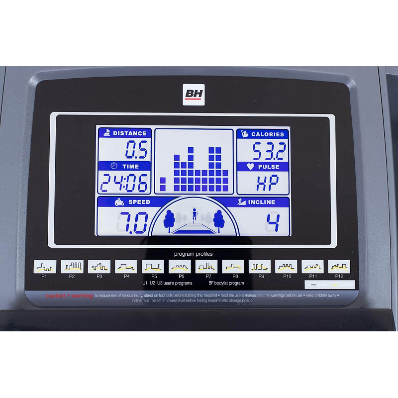 | Měřené hodnoty: | Spálené kalorie, Tep srdce, Vzdálenost, Signalizace překročení tepu, Čas běhu, Rychlost běhu, Sklon pásu |