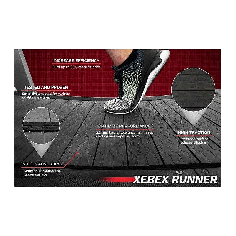 Běžecký pás XEBEX Runner je prohnutý lamelový pás, který je poháněn samotným běžcem. Rychlost si regulujete změnou místa běhu, když se posouváte vpřed, pás zrychluje a když se posouváte vzad, pás zpomaluje.